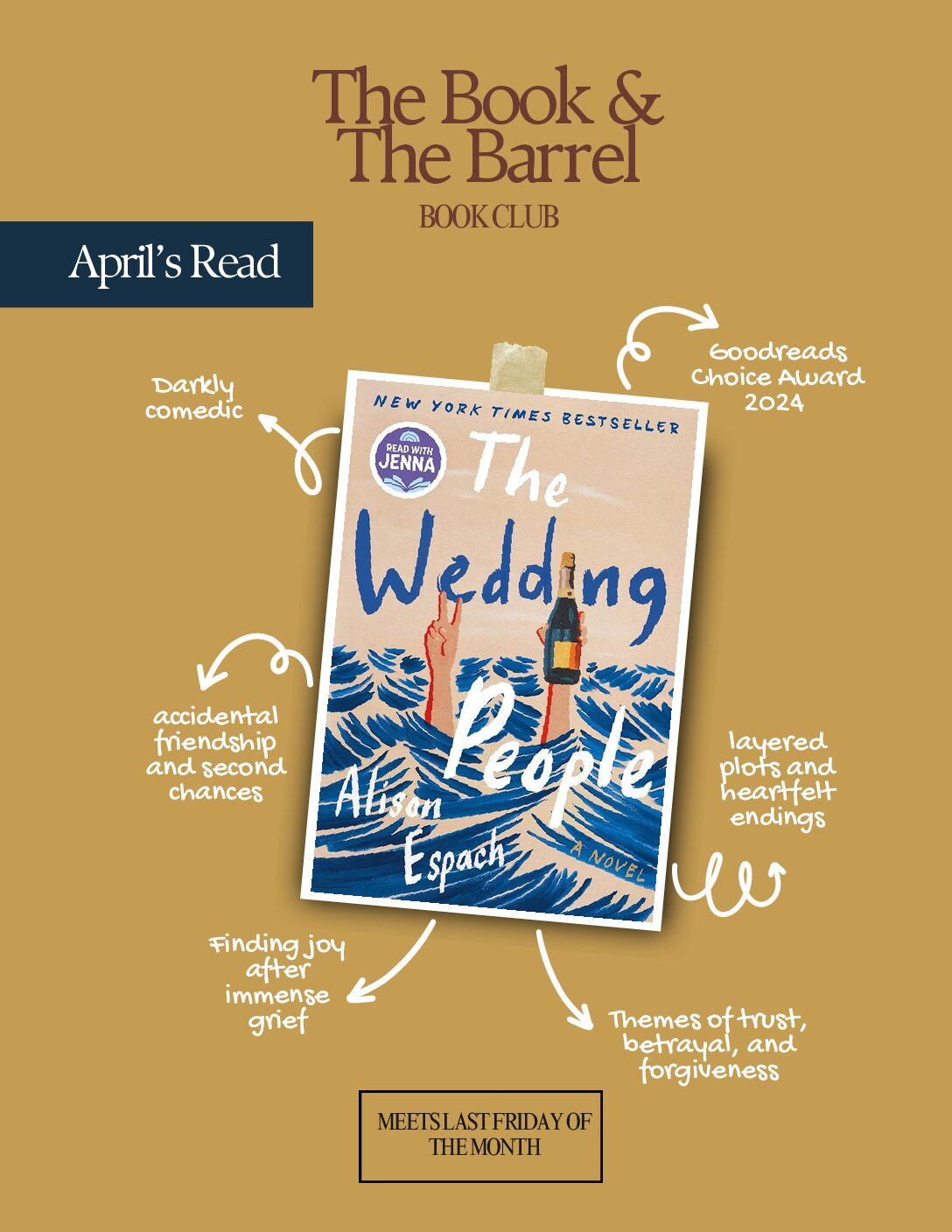 Join us for another evening of The Book & The Barrel Book Club at McKinley Springs. April’s selection is The Wedding People by Allison Espach. Guests are invited to enjoy complimentary charcuterie while discussing the book, along with $8 glass pours of Sparkling, Merlot, and Sauvignon Blanc. Open to all and designed to be relaxed…